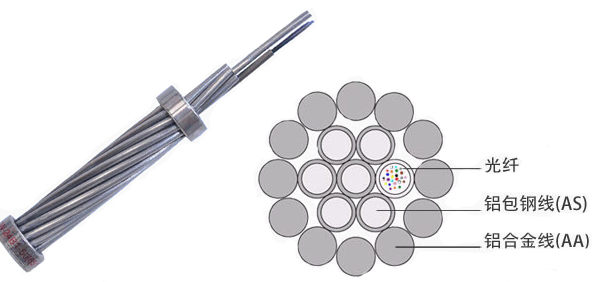 OPGW光纜,Optical Fiber Composite Overhead Ground Wire(也稱光纖復合架空地線)。把光纖放置在架空高壓輸電線的地線中,用以構(gòu)成輸電線路上的光纖通信網(wǎng),這種結(jié)構(gòu)形式兼具地線與通信雙重功能,一般稱作OPGW光纜。