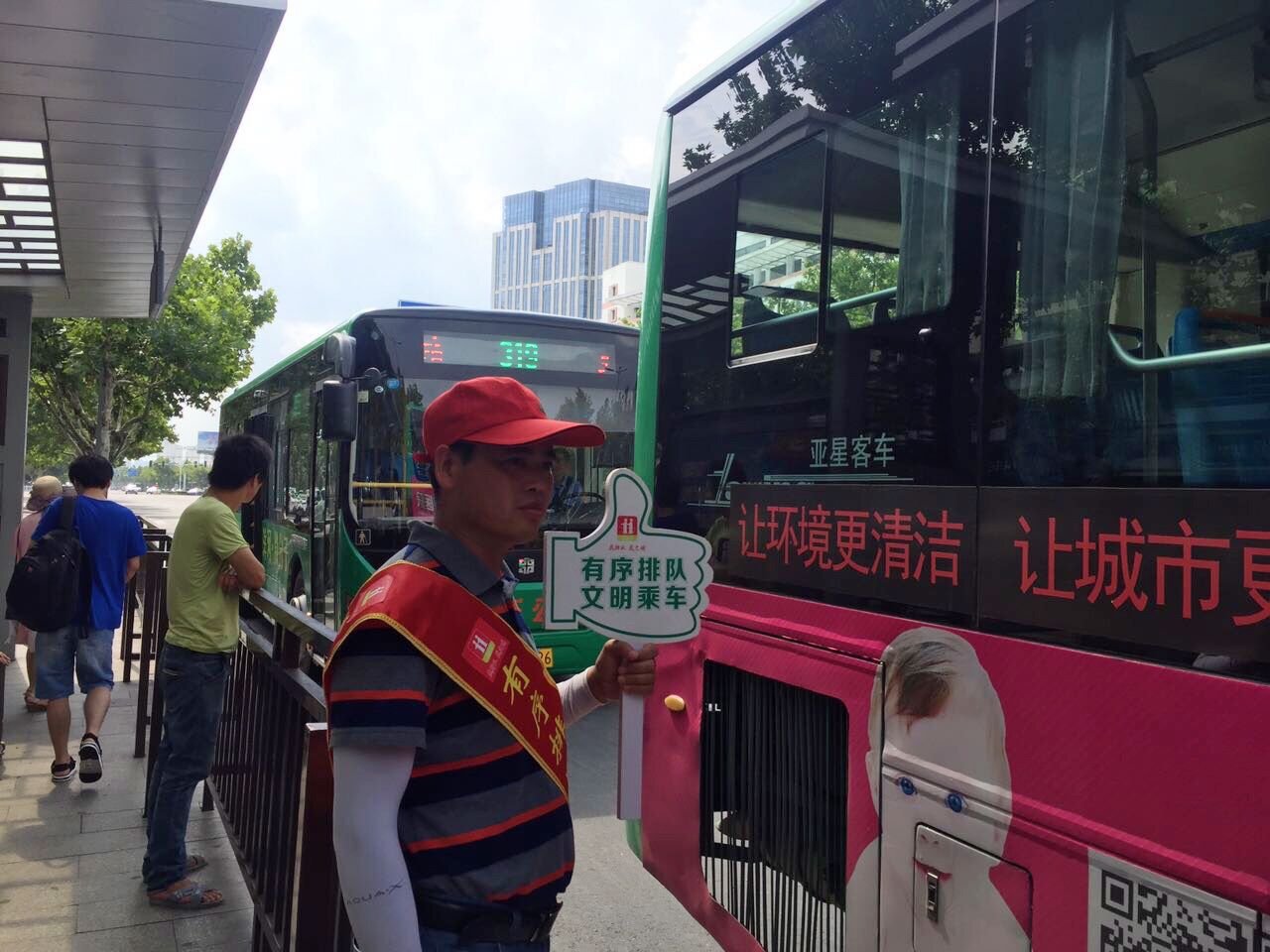 7點(diǎn)30分,志愿者們身穿紅馬甲、頭戴小紅帽、手持文明標(biāo)語(yǔ)牌,準(zhǔn)時(shí)出現(xiàn)在市區(qū)各個(gè)公交車站點(diǎn),引導(dǎo)廣大市民踐行“有序排隊(duì),文明乘車”。他們耐心地給乘車人員講解文明城市創(chuàng)建知識(shí),傳播文明常識(shí);遇到有困難的乘車人員,他們主動(dòng)攙扶;遇到不理解的市民,他們始終微笑服務(wù)、耐心勸導(dǎo),用自己的實(shí)際行動(dòng)詮釋志愿者精神。