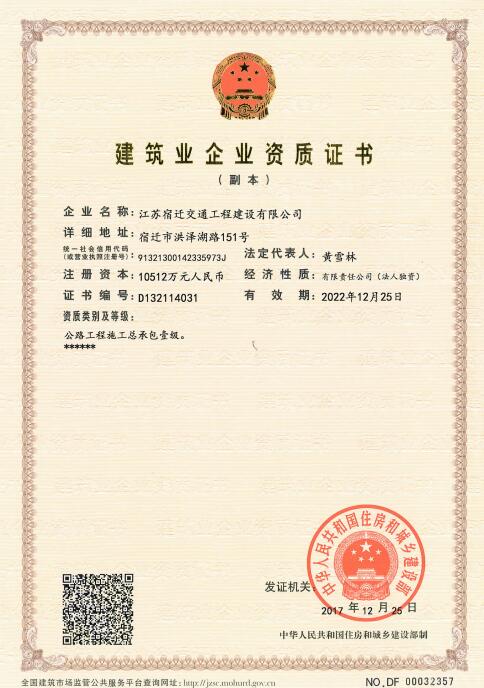 中共江蘇宿遷交通工程建設(shè)有限公司總支部委員會