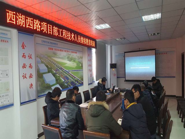 為貫徹執(zhí)行公司關(guān)于加強冬季工程技術(shù)(管理)人員繼續(xù)教育再學(xué)習(xí)的要求,西湖西路項目部于近日組織工程技術(shù)(管理)人員開展繼續(xù)教育培訓(xùn)班。項目經(jīng)理朱文兵任班長,項目副經(jīng)理及總工任副班長,項目部全體成員參班學(xué)習(xí)。