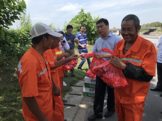 近日,宿遷已進(jìn)入了夏季高溫酷暑季節(jié),為保障一線工作人員和廣大農(nóng)民工的健康和安全權(quán)益,切實(shí)做好防暑降溫工作,確保一線人員平安度夏,7月17日,宿遷市公路處處長(zhǎng)邵巖帶領(lǐng)相關(guān)人員蒞臨宿遷交建養(yǎng)護(hù)分公司,對(duì)奮戰(zhàn)在養(yǎng)護(hù)保潔一線的員工們開(kāi)展防暑降溫送清涼慰問(wèn)活動(dòng)。