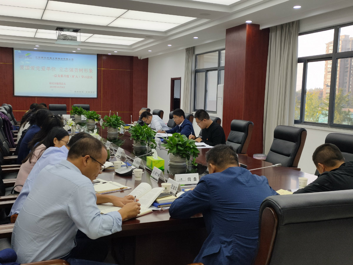 10月8日,公司黨總支召開10月份總支委(擴大)學(xué)習(xí)會議,會議主題為愛國愛黨愛單位、立志強責(zé)樹形象,公司(總)支委班子成員、中層干部、黨務(wù)人員參加,會議由總支副書記周俊主持。