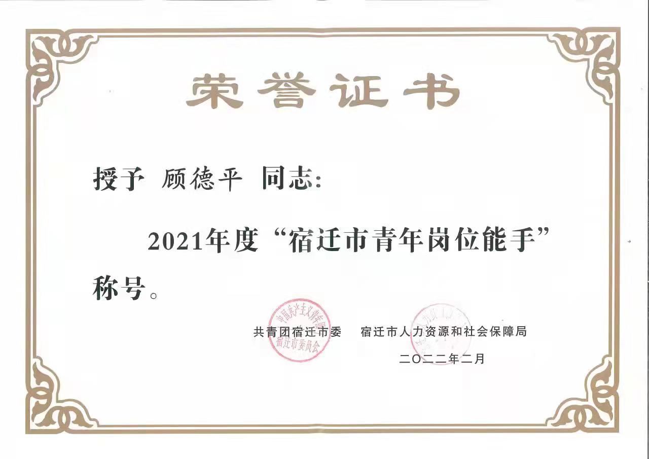 近日,由共青團(tuán)宿遷市委、宿遷市人力資源和社會保障局組織開展的2021年度宿遷市青年崗位能手評選活動結(jié)果出爐,江蘇宿遷交通工程建設(shè)有限公司(簡稱宿遷交建公司)的顧德平被授予2021年度“宿遷市青年崗位能手”的榮譽(yù)稱號。