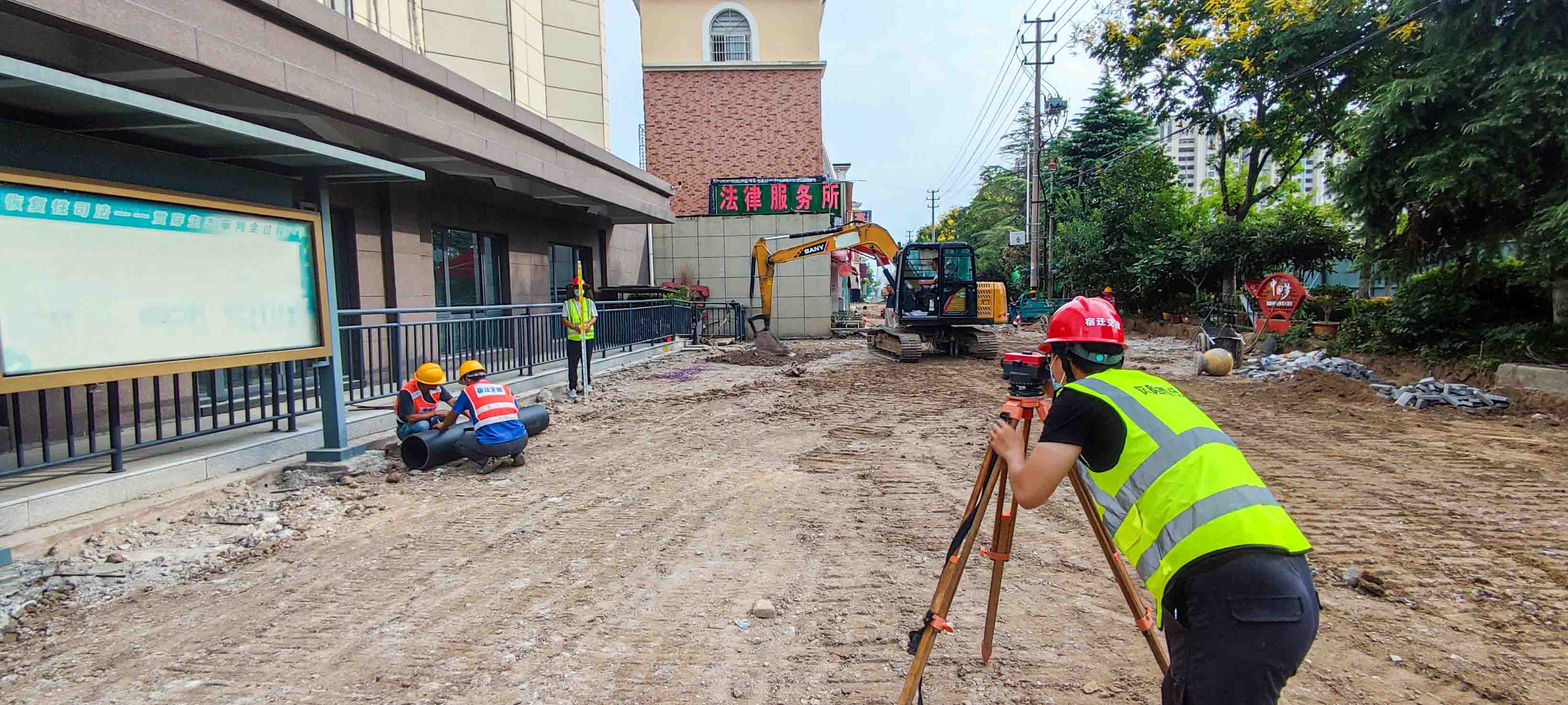 在經(jīng)開(kāi)發(fā)項(xiàng)目施工現(xiàn)場(chǎng),施工技術(shù)員正專心致志進(jìn)行標(biāo)高復(fù)核。據(jù)悉,自8月開(kāi)工以來(lái),該項(xiàng)目就進(jìn)入緊鑼密鼓的施工階段中,目前園區(qū)內(nèi)5條路正在同步建設(shè)施工中。