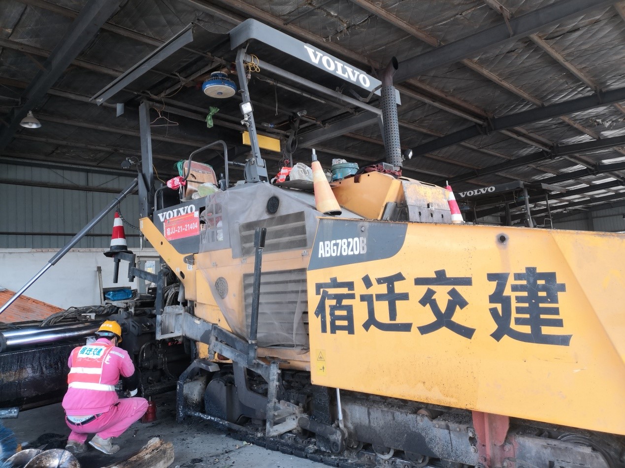 瀝青攤鋪機技術(shù)含量高,也是結(jié)構(gòu)復(fù)雜的專用設(shè)備,功率大,工作溫度高,由于經(jīng)常在野外作業(yè),受著強烈的振動、沖擊載荷,工作環(huán)境惡劣,因此要更細致的維護保養(yǎng)工作,確保攤鋪機經(jīng)常處于完好可靠狀態(tài)。此次保養(yǎng)針對六臺沃爾沃瀝青攤鋪機的耐磨件等進行檢查,對到達使命壽命配件,例如磨損嚴重的熨平板底板、料斗左右護板、中央護板和三角板等給予更換,確保瀝青攤鋪機到達安全使用狀態(tài)。