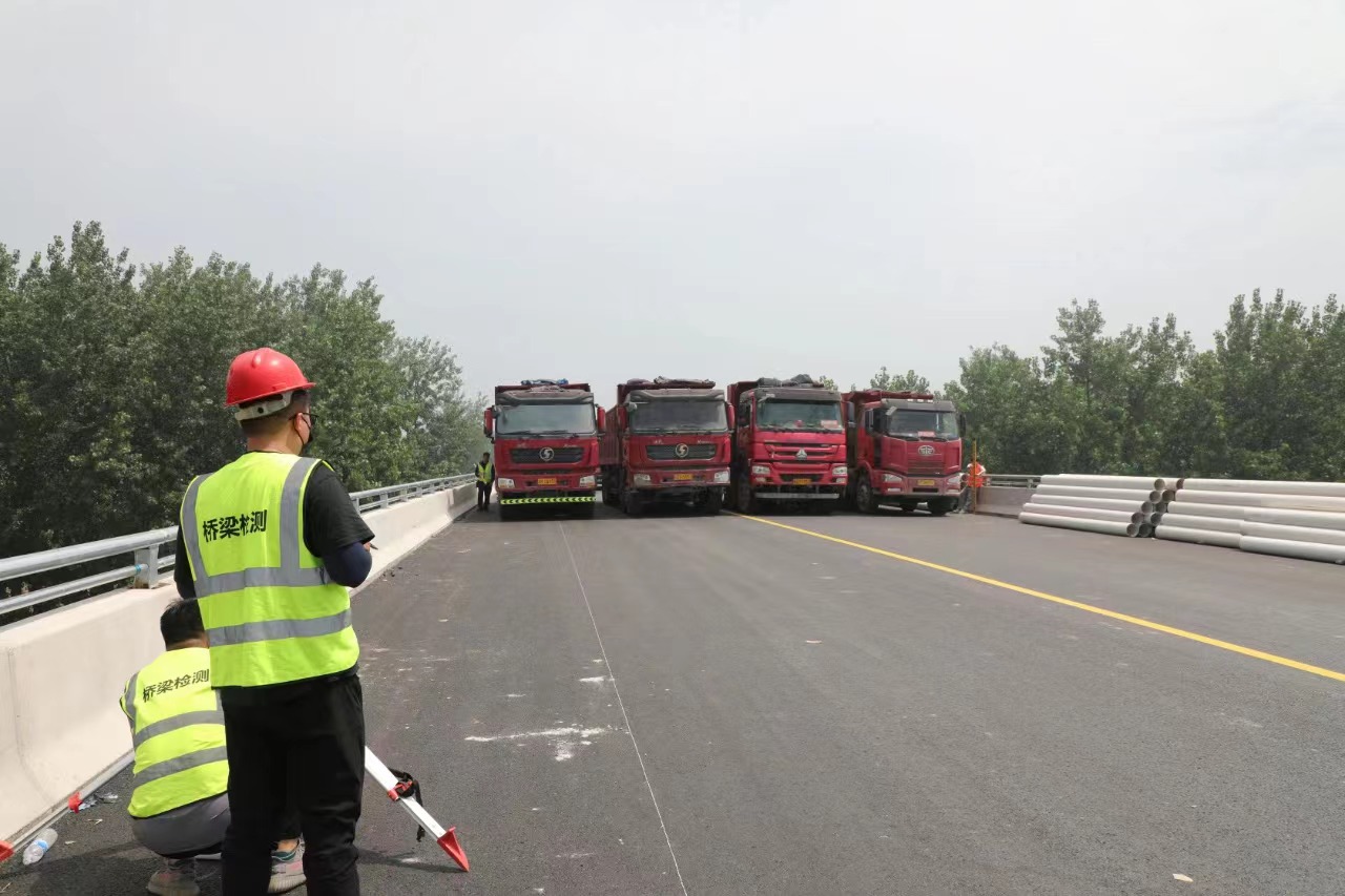 268省道京杭運(yùn)河特大橋全橋1139.64m,主橋采用97+150+90m變截面連續(xù)箱梁,其主跨為宿遷同類(lèi)型橋梁之最,本次荷載試驗(yàn)是檢驗(yàn)橋梁整體施工質(zhì)量和結(jié)構(gòu)受力性能的一項(xiàng)關(guān)鍵工序,也是大橋通車(chē)前最后一次‘體檢’。此次荷載試驗(yàn)根據(jù)方案共投入12輛重卡,通過(guò)不同的靜、動(dòng)力加載方式對(duì)大橋應(yīng)力、變形等進(jìn)行全面觀測(cè),與理論值進(jìn)行對(duì)比分析,驗(yàn)對(duì)大橋的承載能力和動(dòng)力特性進(jìn)行全面評(píng)定,檢驗(yàn)橋梁技術(shù)狀況是否滿(mǎn)足設(shè)計(jì)及規(guī)范要求,同時(shí)通過(guò)試驗(yàn)也可以了解大橋的實(shí)際工作狀態(tài)。
