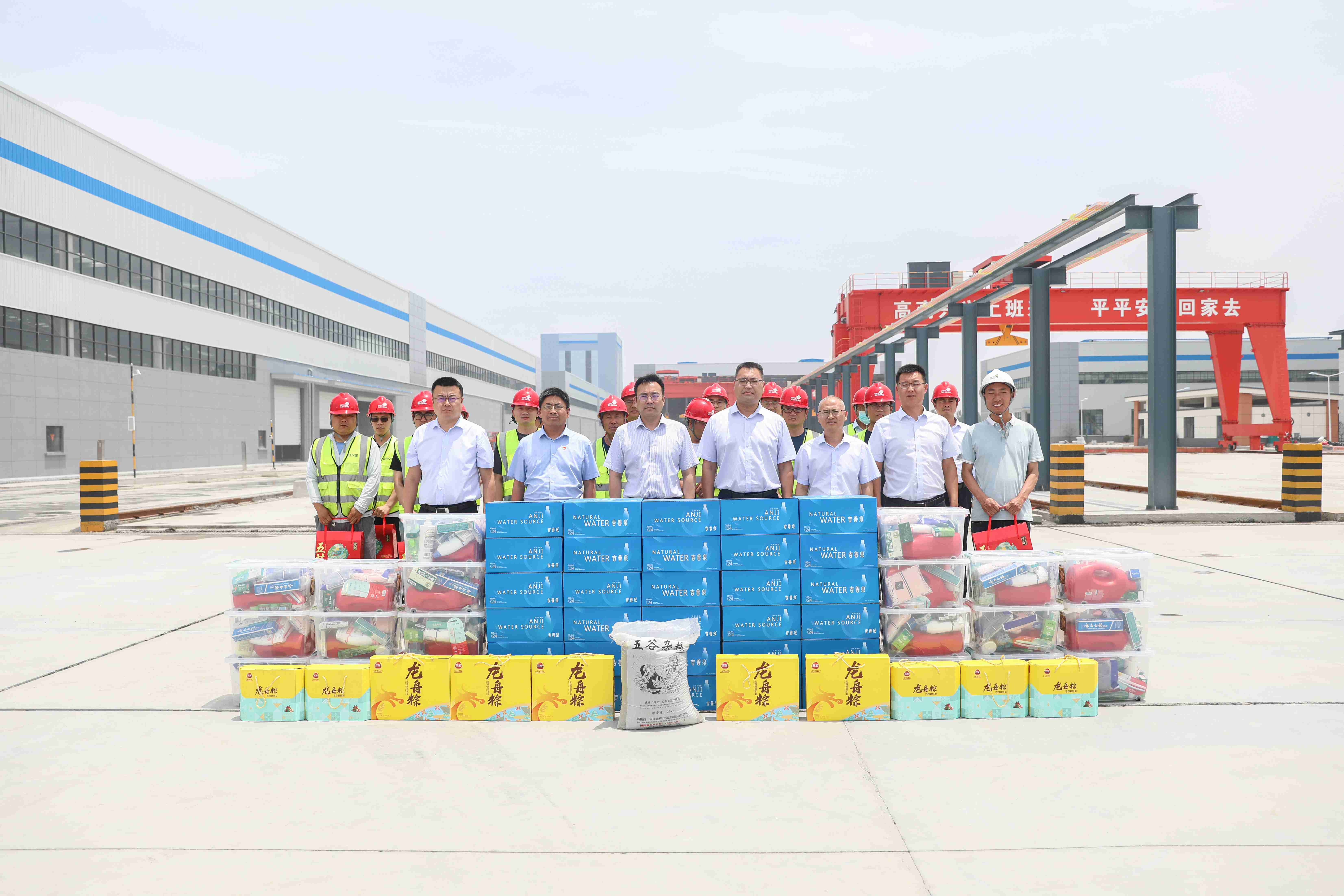 6月21日中午,在傳統(tǒng)佳節(jié)端午節(jié)即將來臨之際,宿遷交建黨總支書記、董事長吳勝坤帶領(lǐng)公司領(lǐng)導(dǎo)班子、工會成員先后前往新隆大道項目和通泰綠色建材基地開展端午節(jié)慰問暨夏送清涼活動,為奮戰(zhàn)在一線的全體施工人員送去絲絲涼意,獻(xiàn)上暖暖關(guān)懷。