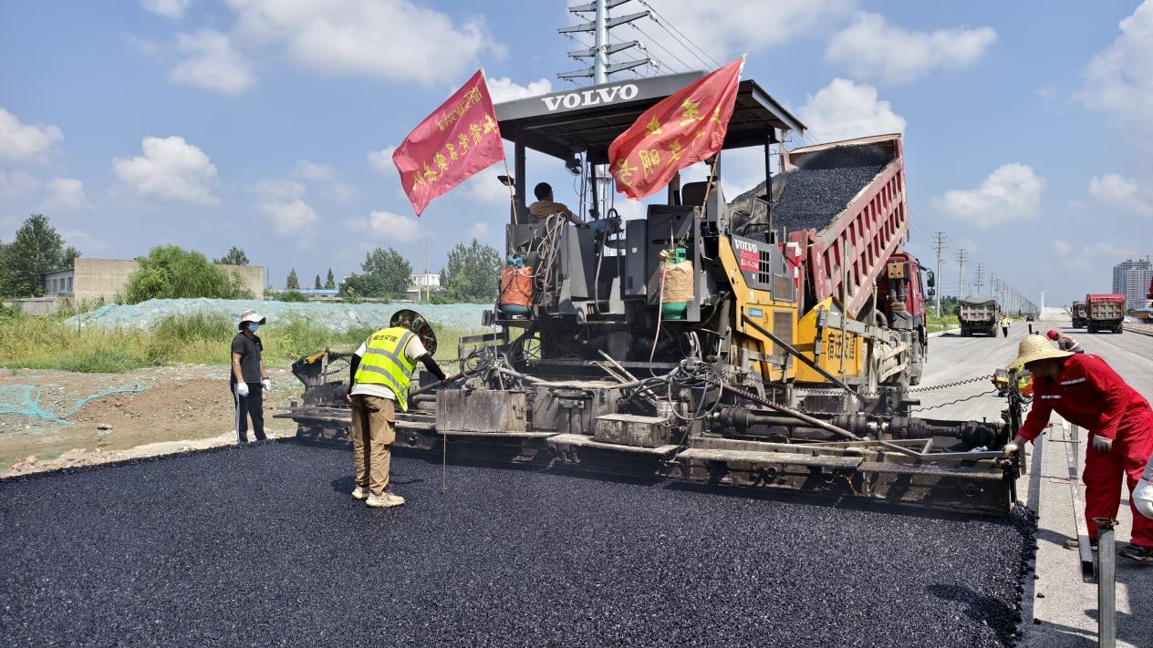 據(jù)悉本次瀝青下面層試驗段攤鋪全長255米,寬度15.75米。為確保試驗段順利攤鋪,項目公司超前謀劃,以瀝青路面施工相關(guān)文件為指導(dǎo),根據(jù)項目實際建設(shè)情況及特點,結(jié)合技術(shù)參數(shù)管控要素,精心做好工序和設(shè)備配置組織安排,做實做細瀝青施工材料儲備、設(shè)備調(diào)試、人員安全和技術(shù)交底等工作?,F(xiàn)場配備攤鋪機2臺,鋼輪4臺,膠輪壓路機4臺,小鋼輪1臺,從瀝青混合料的拌和、運輸?shù)綌備?、碾壓,各個環(huán)節(jié)有序銜接,實現(xiàn)了一次攤鋪成形,攤鋪連續(xù)穩(wěn)定、平整光潔,施工質(zhì)量安全整體可控。此外,為了應(yīng)對高溫天氣,項目部為現(xiàn)場施工人員配備了雪糕、藿香正氣水、純凈水等防暑降溫物資。