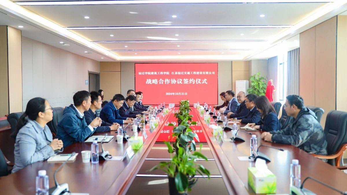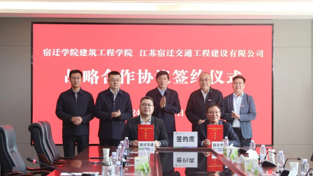 10月31日,宿遷交建與宿遷學(xué)院建工學(xué)院在通泰建材公司簽署戰(zhàn)略合作協(xié)議,并舉行“交通基礎(chǔ)設(shè)施低碳材料與智能建造工程研究中心”揭牌儀式。宿遷學(xué)院建工學(xué)院黨委書(shū)記郭振宇、院長(zhǎng)朱方之等領(lǐng)導(dǎo),宿遷交通集團(tuán)黨委委員、副總經(jīng)理黃雪林,宿遷交建黨總支書(shū)記、總經(jīng)理朱文兵等領(lǐng)導(dǎo)出席活動(dòng)。儀式由周俊副書(shū)記主持。
