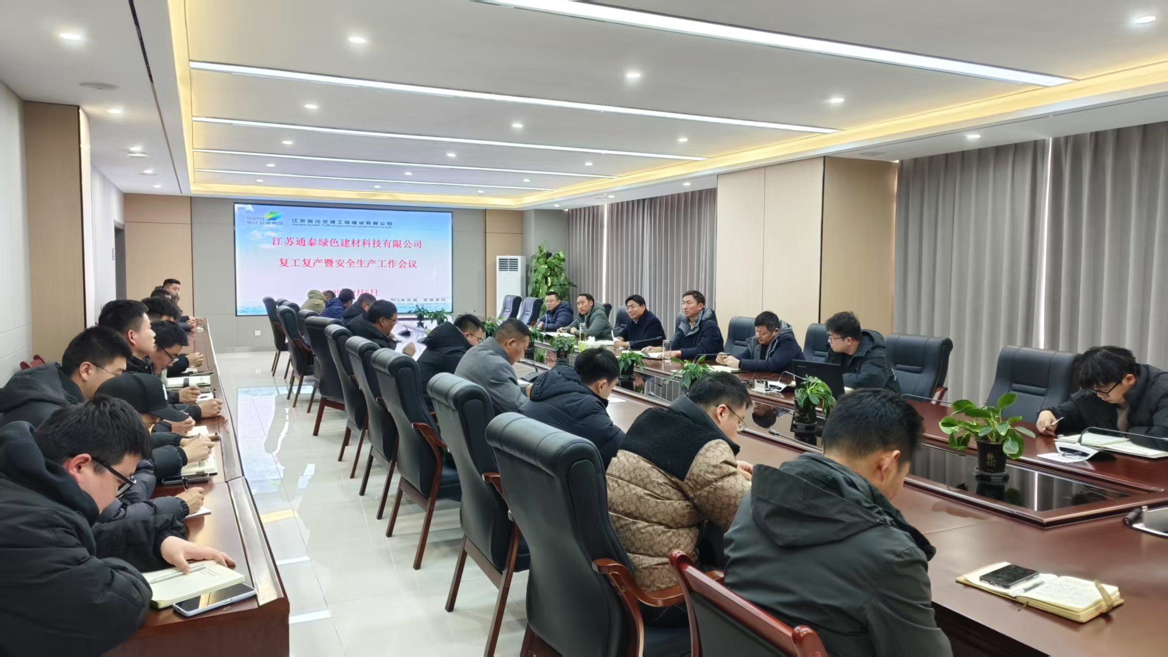 2月5日下午,通泰綠色建材公司召開2025年復(fù)工復(fù)產(chǎn)動員暨安全生產(chǎn)工作會議,全面部署新一年生產(chǎn)經(jīng)營目標與安全管理工作。宿遷交建黨總支副書記周俊主持會議并作重要講話,通泰高新廠區(qū)及關(guān)廟廠區(qū)負責(zé)人及一線職工代表共40余人參會。