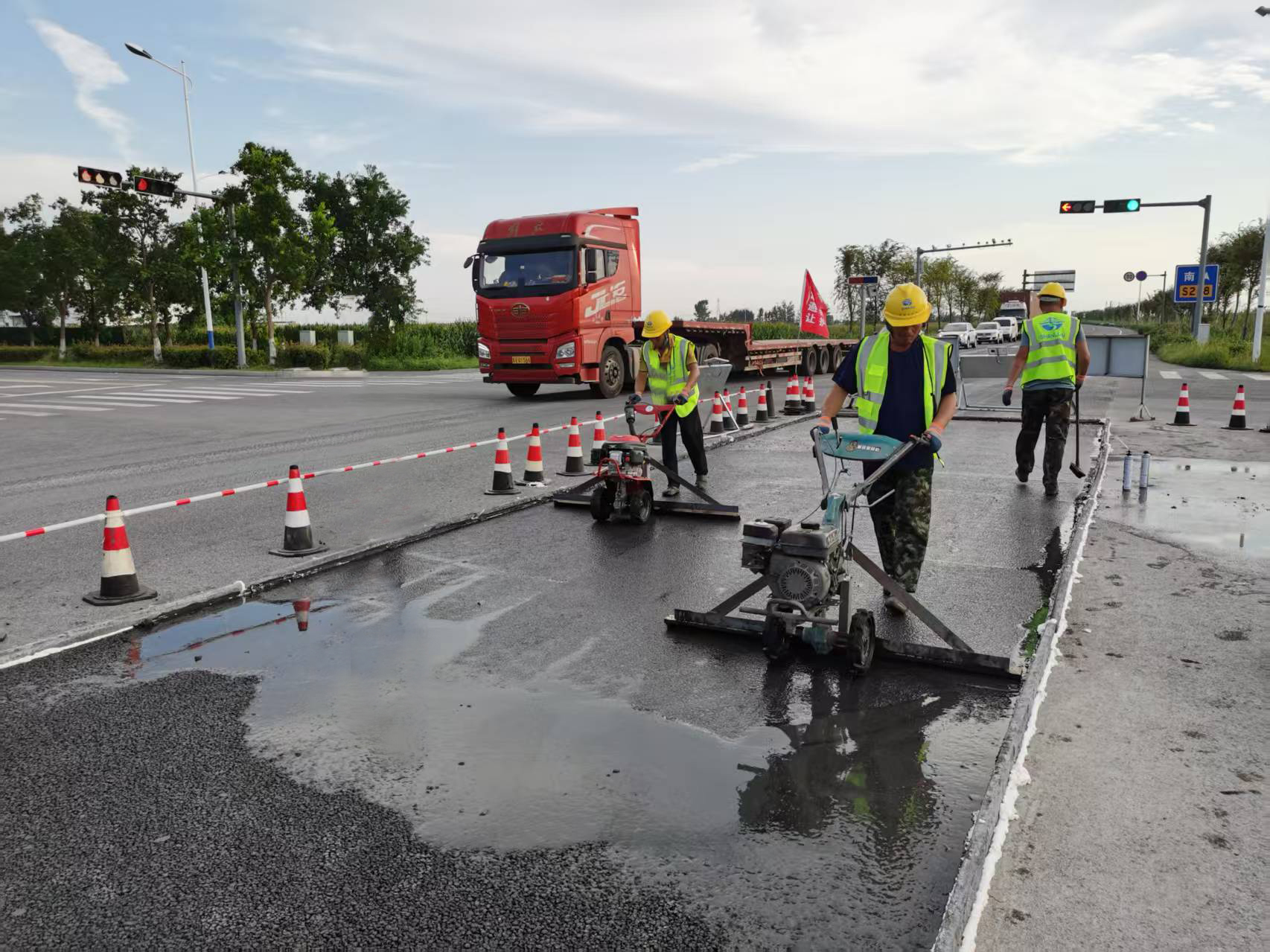 本次實(shí)施的S268省道與徐淮路交叉口區(qū)域長期受重型車輛頻繁啟停、轉(zhuǎn)向等復(fù)雜受力行為影響,原路面出現(xiàn)不同程度的車轍、擁包等病害。宿遷交建養(yǎng)護(hù)分公司以問題為導(dǎo)向,積極引入半柔性灌漿路面結(jié)構(gòu),通過材料創(chuàng)新與工藝優(yōu)化,顯著提升該路段抗車轍、抗疲勞和耐久性能。灌漿后的路面不僅具備優(yōu)異的承載能力和穩(wěn)定性,還能有效抑制反射裂縫擴(kuò)展,大幅延長道路使用壽命。